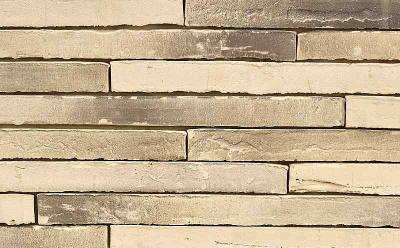 Terca Wasserstrich Special Grijswit (Arctic Geflammt) – бельгийский ригельный кирпич ручной формовки бежево-коричневого пестрого цвета. Размер 500х100х40 мм. Свою поверхность с потертостями и грубые, шероховатые края кирпич получил благодаря обработке водой в процессе производства (wasserstrich).
