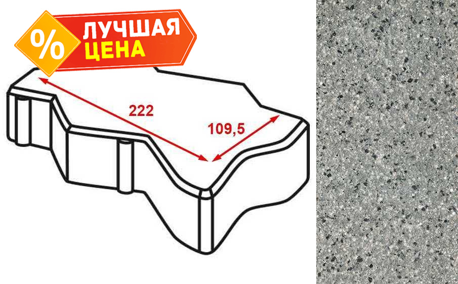 Плитка тротуарная Готика Granite FERRO, зигзаг/волна, Белла Уайт 222x109,5x60 мм